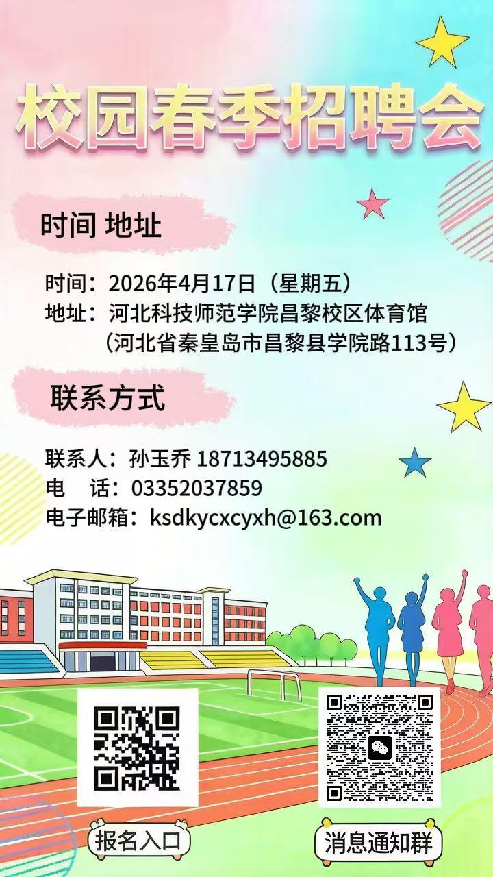 2026年4月17日上午8:30河北科技师范学院动物科技学院欢迎各位企业前来招聘